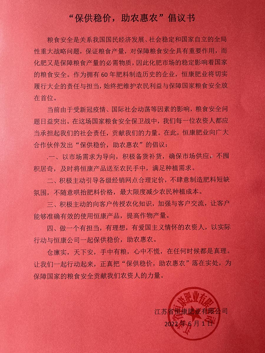 "保供穩價,助農惠農"倡議書